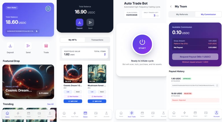 Starting something new can feel confusing, so SR3TNFT is designed to give beginners a smooth, predictable experience. Once you make your first deposit in USDC, the platform guides you step by step toward buying your first NFT and understanding how growth works.